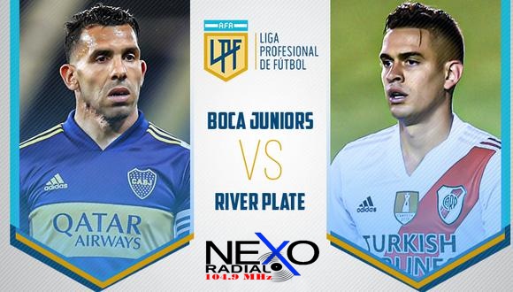 Con transmisión EN VIVO de NEXO RADIAL y relatos de Axel Rodas Comentarios Miranda Albornoz y Alan Rovira Campo Candela Cocich Martina Silva Aldana Correa Débora Vázquez, vivi el encuentro donde Boca y River se enfrentan en un partido definitorio es lo más de lo más para los futboleros argentinos. El Superclásico tiene este domingo 16 de mayo un capítulo grande cuando se enfrenten los dos colosos en el partido de cuartos de final de la Copa de la Liga Profesional.
